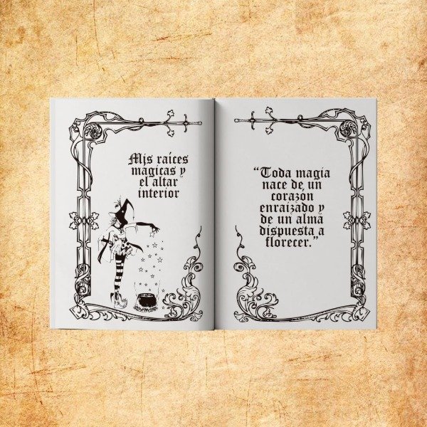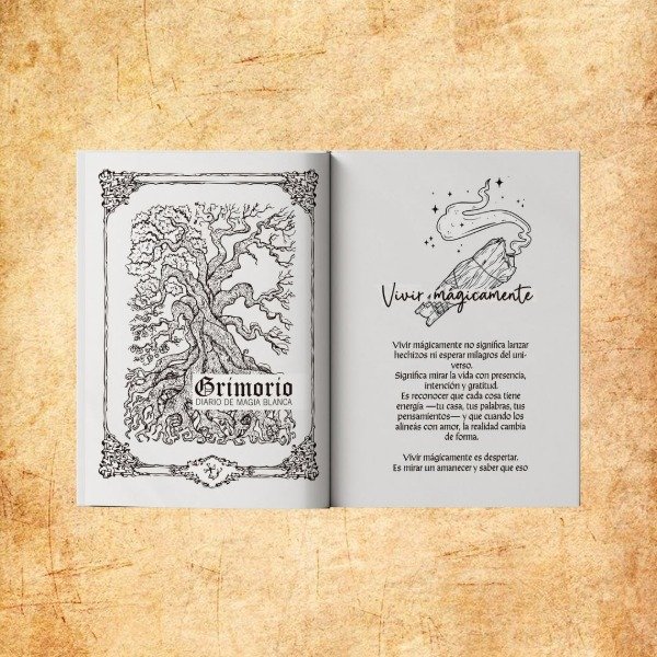 Este grimorio es una guía de luz, creada para brujas blancas: mujeres que vibran en amor, que buscan armonizar, sanar y reconectarse con la naturaleza y con su energía interior.