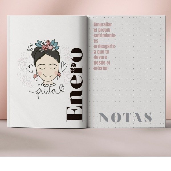 "La Frida de Tinta"! ✨📆 Una agenda única para quienes quieren organización y arte en cada semana: con columnas verticales y horarios perfectos para turnos, ¡ideal para llevar tus días al ritmo de Frida! 🌸❤️